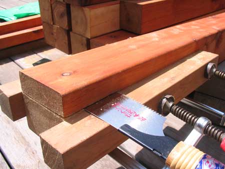 朝の早い時間は騒音のため電動工具は使えません。そこで素人でもできる精度のいいカットとほぞのオスの作り方を考えてみました。